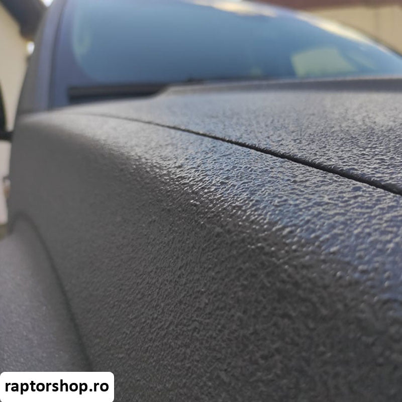 Egyedi megjelenést kínál, tökéletes megoldást találva a terepjárók, off-road versenyek és tuning számára. Tetszés szerint, textúrázva vagy sima, mint egy klasszikus festék, a RAPTOR pisztollyal, antifouling pisztollyal, klasszikus pisztollyal vagy simítóval vagy ecsettel lehet felhordani.